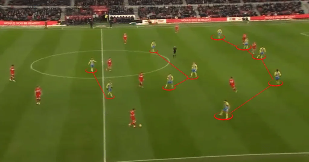 It won the midfield battle and stopped both sets of opposition from finding forward passes, forcing them long. Saints did this in their FA Cup games against Arsenal and Fulham, too, but stuck with the two banks of four without the ball in order to gamble on the counter-attack.