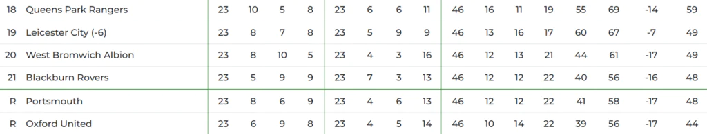 QPR are currently sat on 50 points in 16th place, but with two wins in eight – a slight chance of relegation is still lingering with those at the bottom sat between 38 and 42 points.
