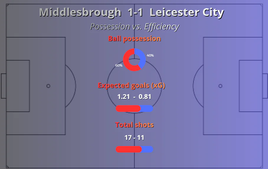 Final xG: Middlesbrough 1.21 – 0.81 Leicester City.