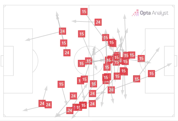 While this lack of midfield control was somewhat down to Southampton’s quality, the two QPR central midfielders shared just 67 touches in total. Compared to the 110 of Saints duo Caspar Jander and Flynn Downes, it’s poor viewing.