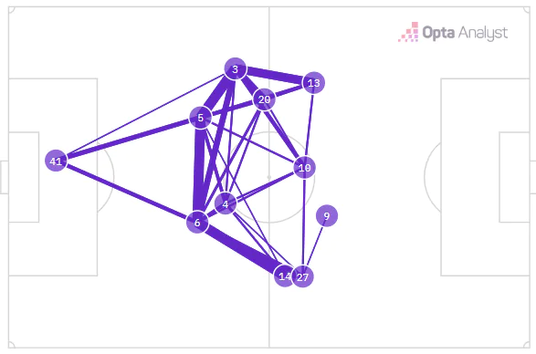 Kuryu Matsuki, who on paper was Saints’ right winger on the night, became a right centre midfielder, pushing Flynn Downes and Caspar Jander vertically into a midfield three. This change allowed Saints to dominate the midfield, and QPR’s core collapsed.